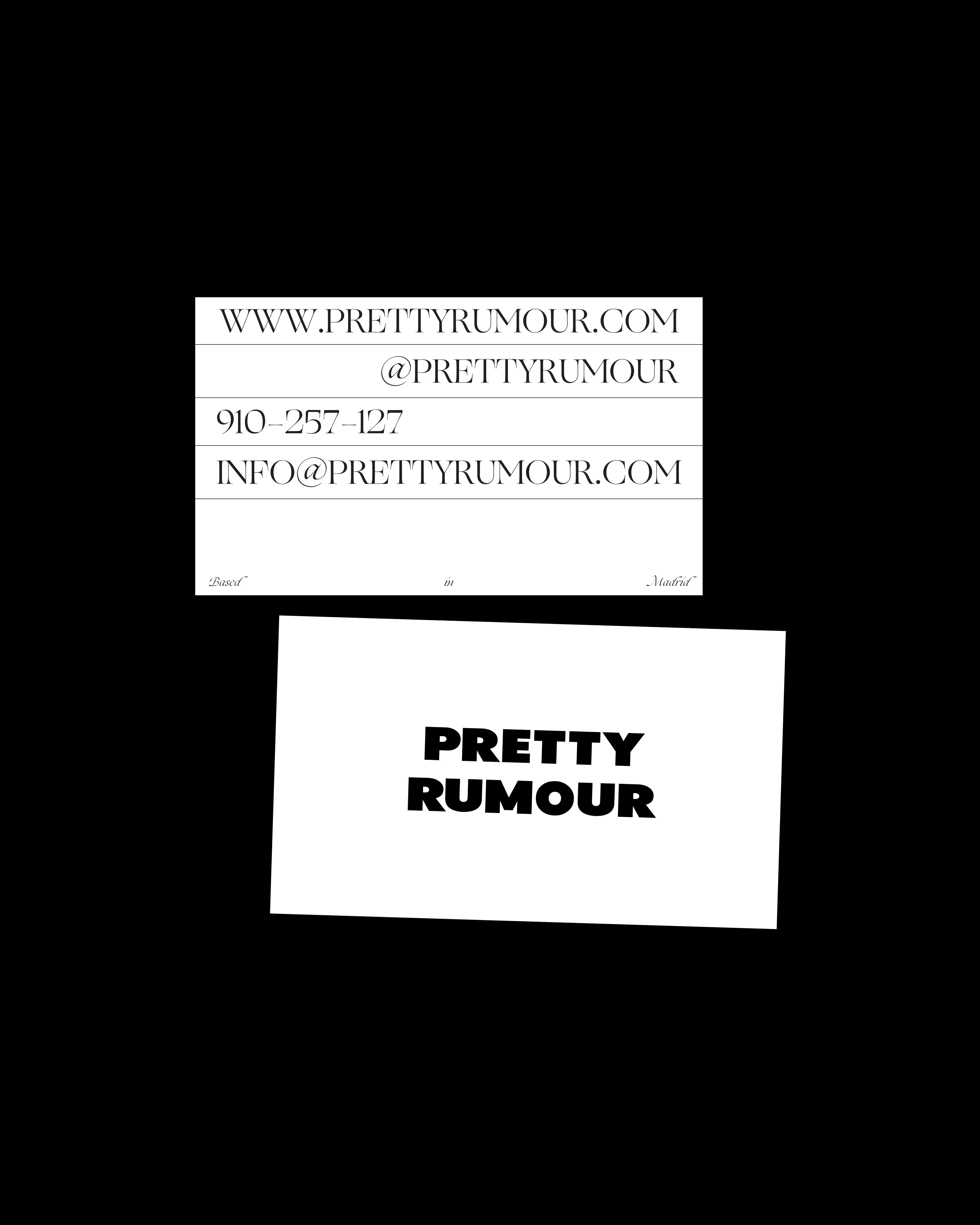 PRETTY RUMOUR creates custom handmade jewelry crafted from high-quality metals and stones. To capture the essence of its work—both simple and sophisticated—the graphic system leverages the contrast between a decorative serif and a clean, straightforward sans serif. This approach reflects the balance between the artistry of craftsmanship and the raw edge of silversmithing. The rest of the brand is enriched with visual imagery that showcases the jewelry's versatility and purpose. The human form is seamlessly integrated into the visuals, serving as a canvas that brings the pieces to life.