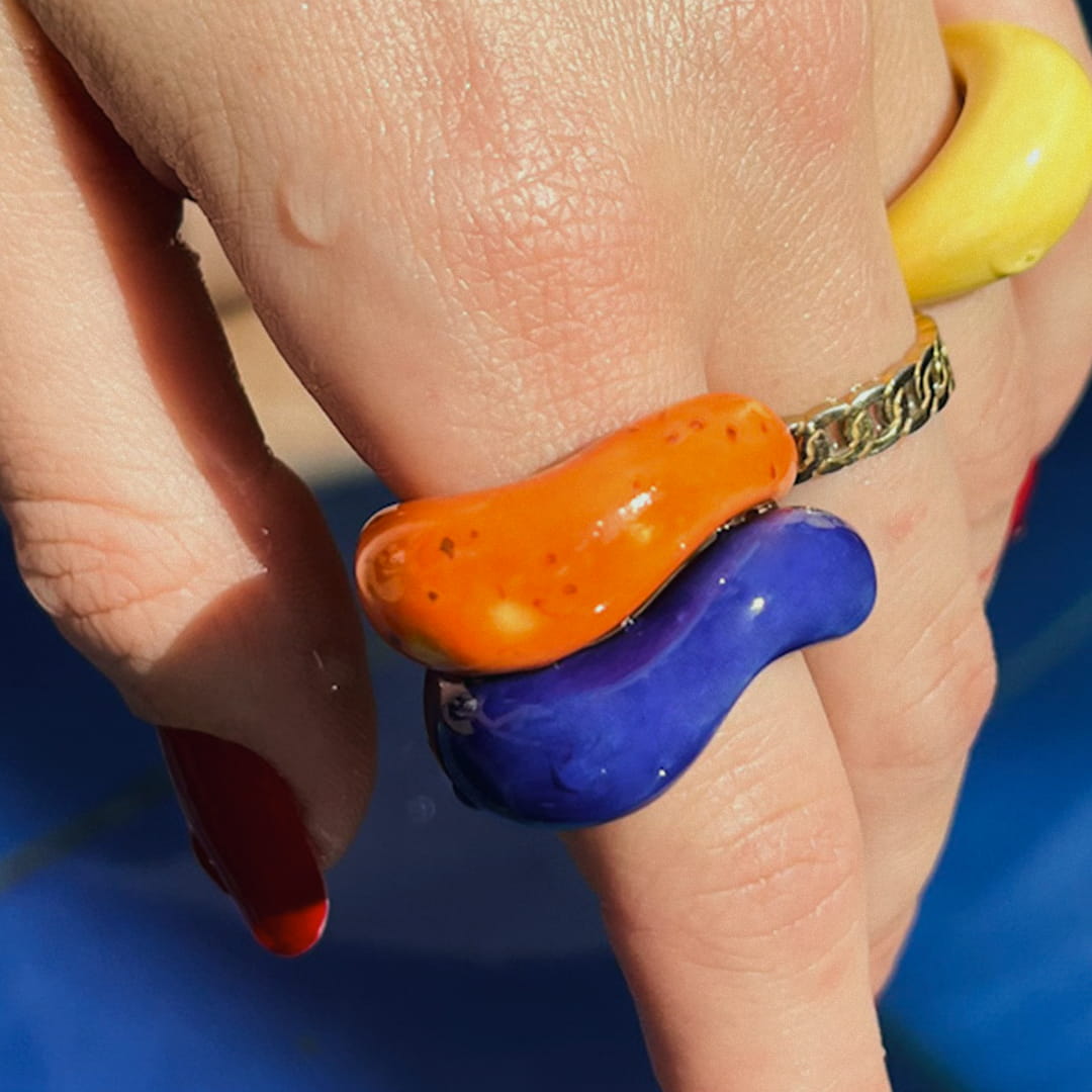 Visual identity and rollout for a ceramic ring series, entirely hand-sculpted as a personal side project. Each piece features organic, irregular forms, custom-crafted for wearability and individuality. The debut collection, Agosto, draws conceptual and visual inspiration from Bad Bunny’s Un Verano Sin Ti, translating the album’s mood into a tactile language of form, color, and narrative. The identity system extends this emotional thread—through naming, palette, and imagery—bridging music, memory, and material into a cohesive, collectible body of work.